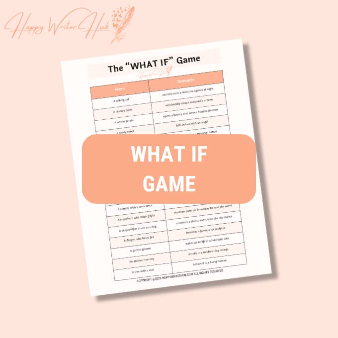 Get inspired in minutes with THE WHAT IF GAME—a FREE printable full of mix-and-match heroes and scenarios designed to spark fun story ideas whenever you feel stuck.